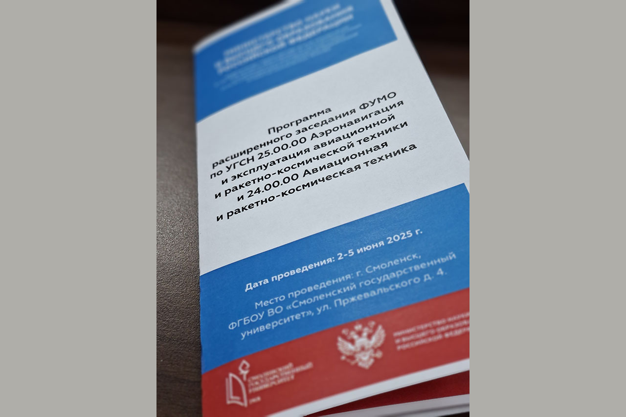 02 – 05 июня 2025 г. состоялось очередное совместное заседание федеральных учебно-методических объединений по УГСН 24.00.00 «Авиационная и ракетно-космическая техника» и 25.00.00 «Аэронавигация и эксплуатация авиационной и ракетно-космической техники». Площадки для проведения заседаний предоставил Смоленский государственный университет.