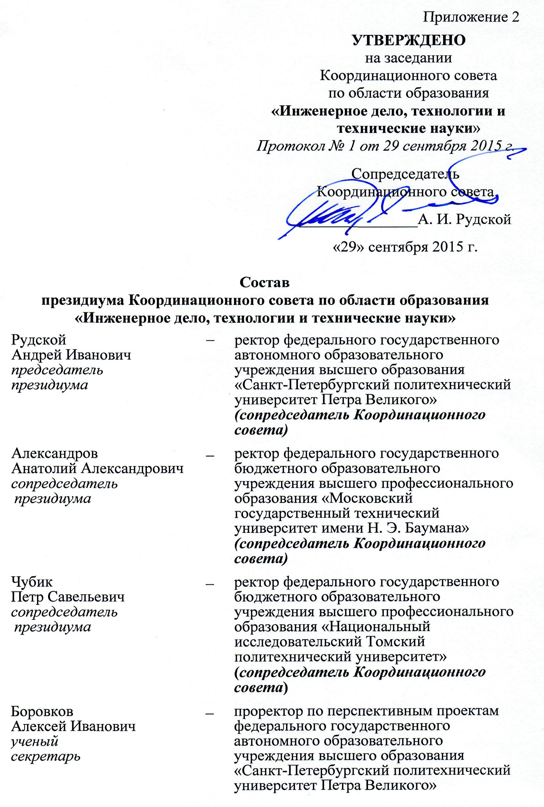 - Координационный совет по области образования «Инженерное дело, технологии и технические науки»